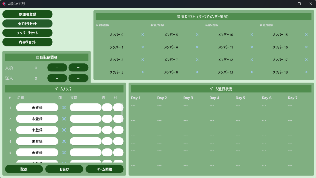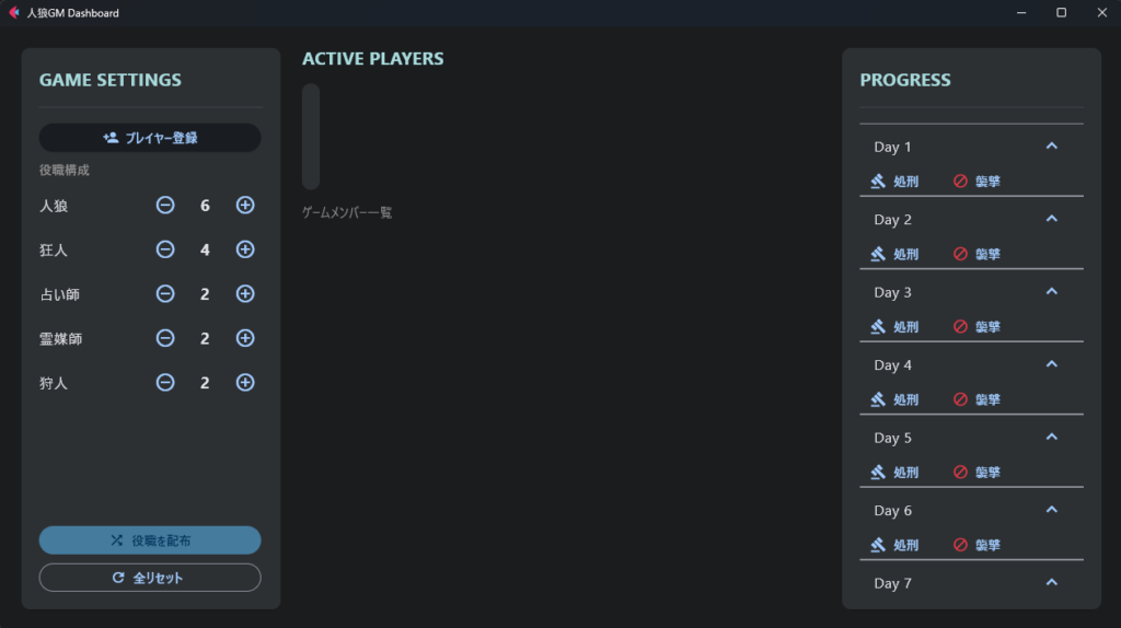 そして、役職構成のカウンターだけは動きます。この調子でAIの助けを借りつつ、少しずつ実装を進めてみようと思います。