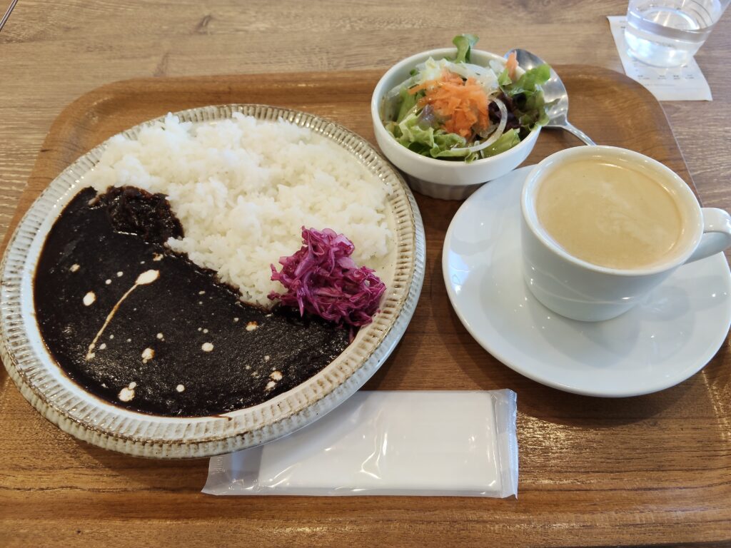 いつも「シシリアンパスタ」か「久里浜黒船カレー」の2択で迷うのですが、この日はカレーをチョイス(+ホットコーヒー)。