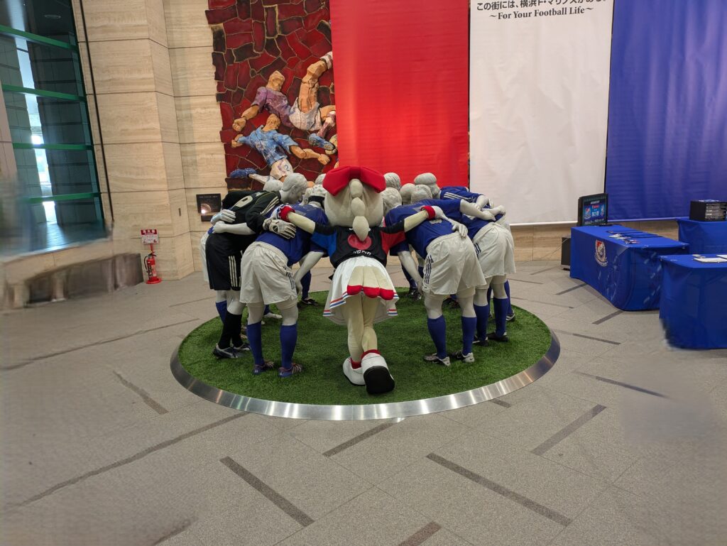 これまで30年以上マリノスを応援してきて、マリノスくんをはじめ、マリノスケやマリンといったマスコットキャラとふれあうことは皆無でした。それは決して興味がないからではなく、ただ気恥ずかしくて勇気がなかったからです。これを機会にマスコットキャラともふれあいたいなーと思う気持ちがありました。