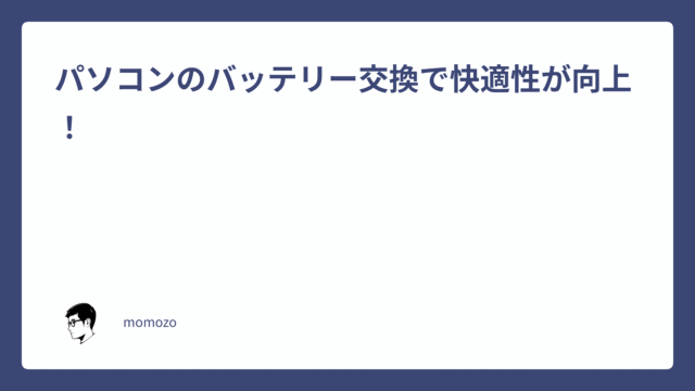 03.パソコン パソコンのバッテリー交換で快適性が向上! 2024年3月16日 momozo https://looblog.com/wp-content/uploads/2025/05/ブログタイトル.png 万年筆とわらばんし ー想いとアイデアをつづるデジタルライフログ