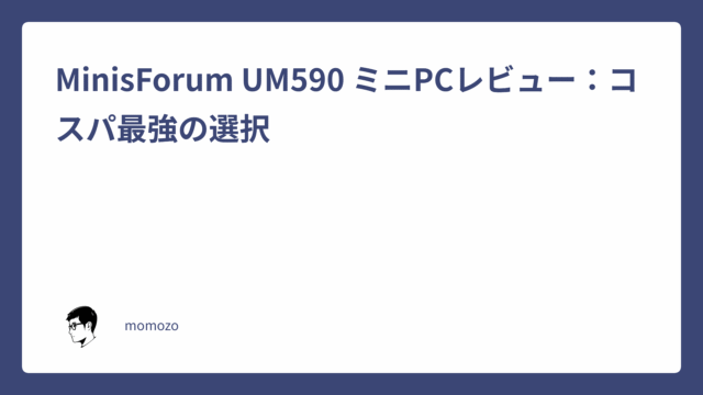 03.パソコン MinisForum UM590 ミニPCレビュー:コスパ最強の選択 2024年2月5日 momozo https://looblog.com/wp-content/uploads/2025/05/ブログタイトル.png 万年筆とわらばんし ー想いとアイデアをつづるデジタルライフログ